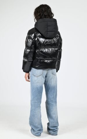 – Capuche amovible par zip et ajustable par cordons de serrage signature