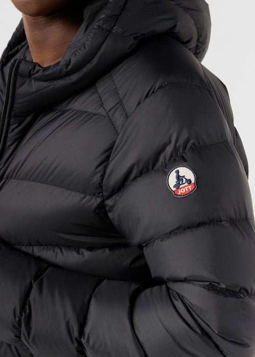 Ce modèle combine le confort d’une doudoune garnie de duvet à une ligne épurée et fonctionnelle. Le matelassage large et régulier donne un volume maîtrisé, idéal pour un look urbain et moderne. Sa couleur sombre et sobre s’accorde avec toutes les tenues d’hiver, du jean au chino. La capuche fixe et les poches zippées en font un indispensable du quotidien quand les températures chutent.