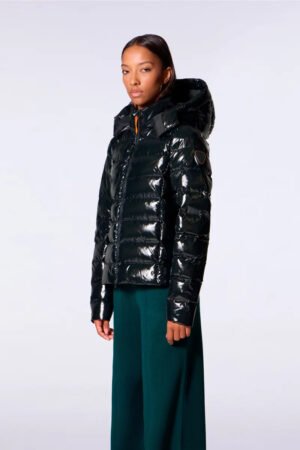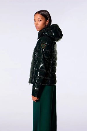 FRANCE BRIGHT est une doudoune légère ajustée aux épaules et légèrement cintrée. Elle est confectionnée en nylon glossy. La capuche est amovible. L’ouverture milieu devant se fait par un zip en plastique injecté rehaussé d’une tirette en gros grain contrasté. Deux poches zippées invisibles sont insérées dans les découpes princesse. Le patch en silicone iconique ton sur ton de la marque est apposé sur l’épaule.