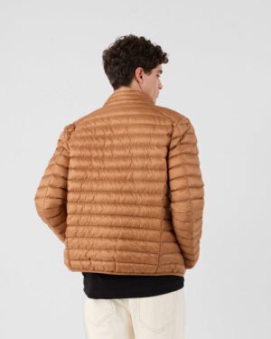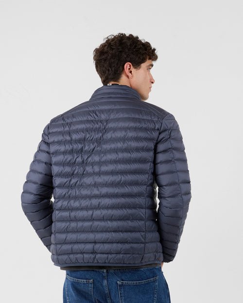 Matière matelassée satinée et déperlante, coupe ajustée, petit col montant matelassé, 2 poches côtés invisibles, coutures intérieures de couleur contrastées, logo feutrine original manche gauche