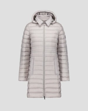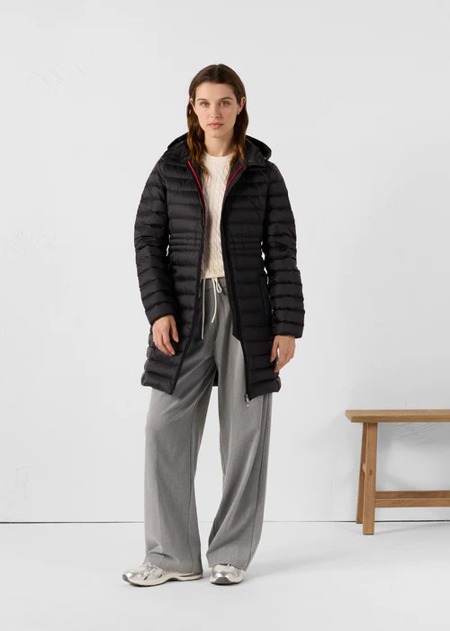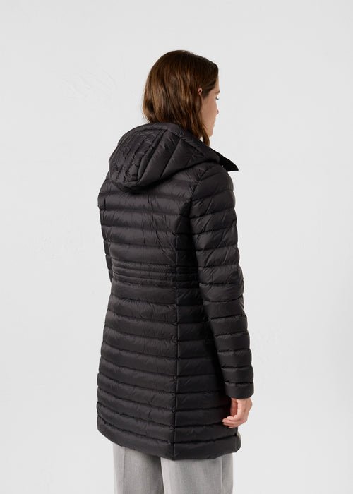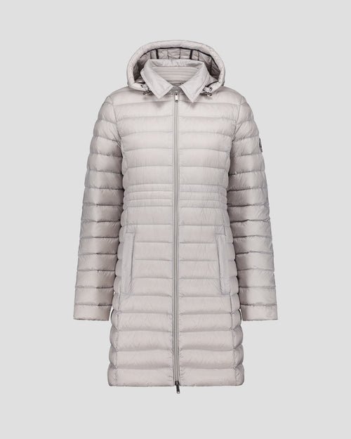 Doudoune longue en polyamide légerGarnissage en duvet 90 % / plumes 10 %Capuche amovibleNouveau col inspiré du trenchCordon de serrage ajustable à la taille pour une silhouette personnaliséePatch logo feutré sur la manche gauche