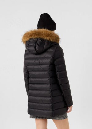- Capuche amovible avec fausse fourrure et deux boutons-pression.