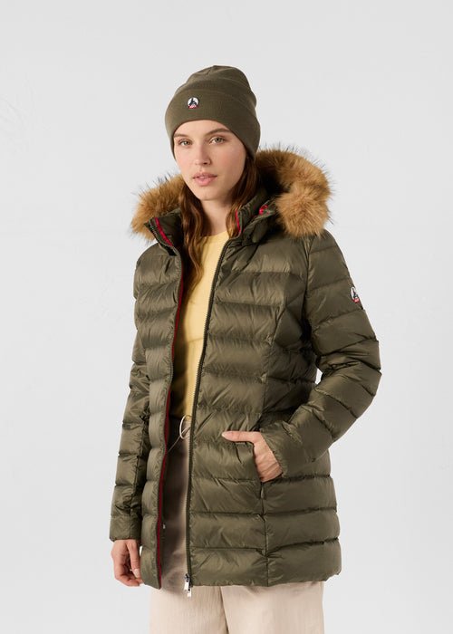 - Doudoune mi-longue en tissu polyamide iconique, coupe ajustée.