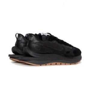 La Nike Vaporwaffle Sacai Black Gum se pare d’un upper en suède et tissu nylon, le même matériau que l’on a pu retrouver sur les LD Waffle Triple Black et. Chacun des éléments est présenté en noir et s’accorde à la midsole. Pour créer un léger contraste, l’outsole opte quant à elle pour du gum.