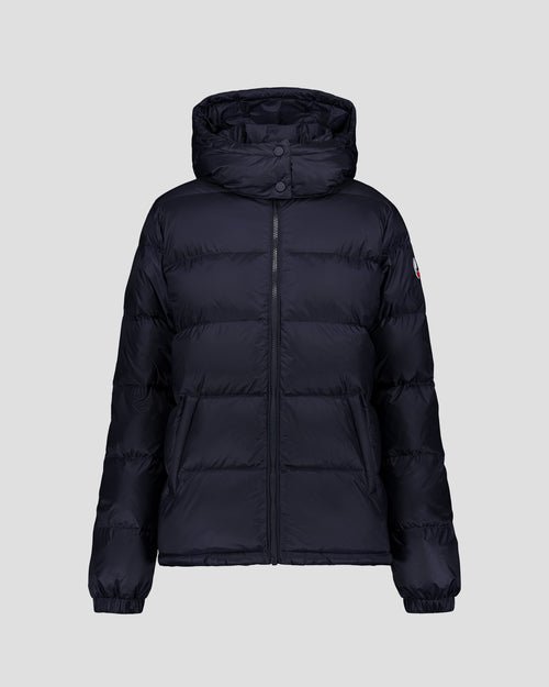 Doudoune courte en tissu iconique polyamide, coupe régulière, coupe ajustée, deux poches latérales, fermeture zippée sur le devant, capuche amovible avec fausse fourrure.